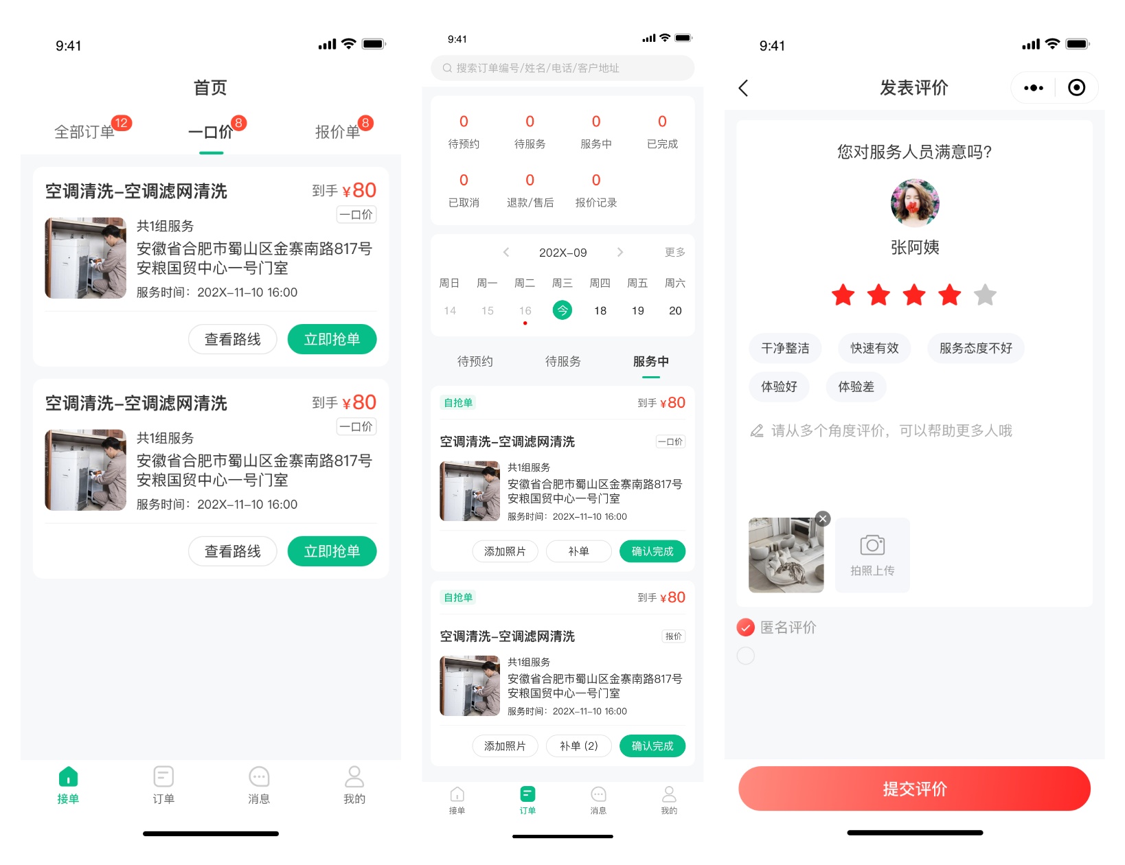 · 师傅 / 阿姨在线接单、抢单;