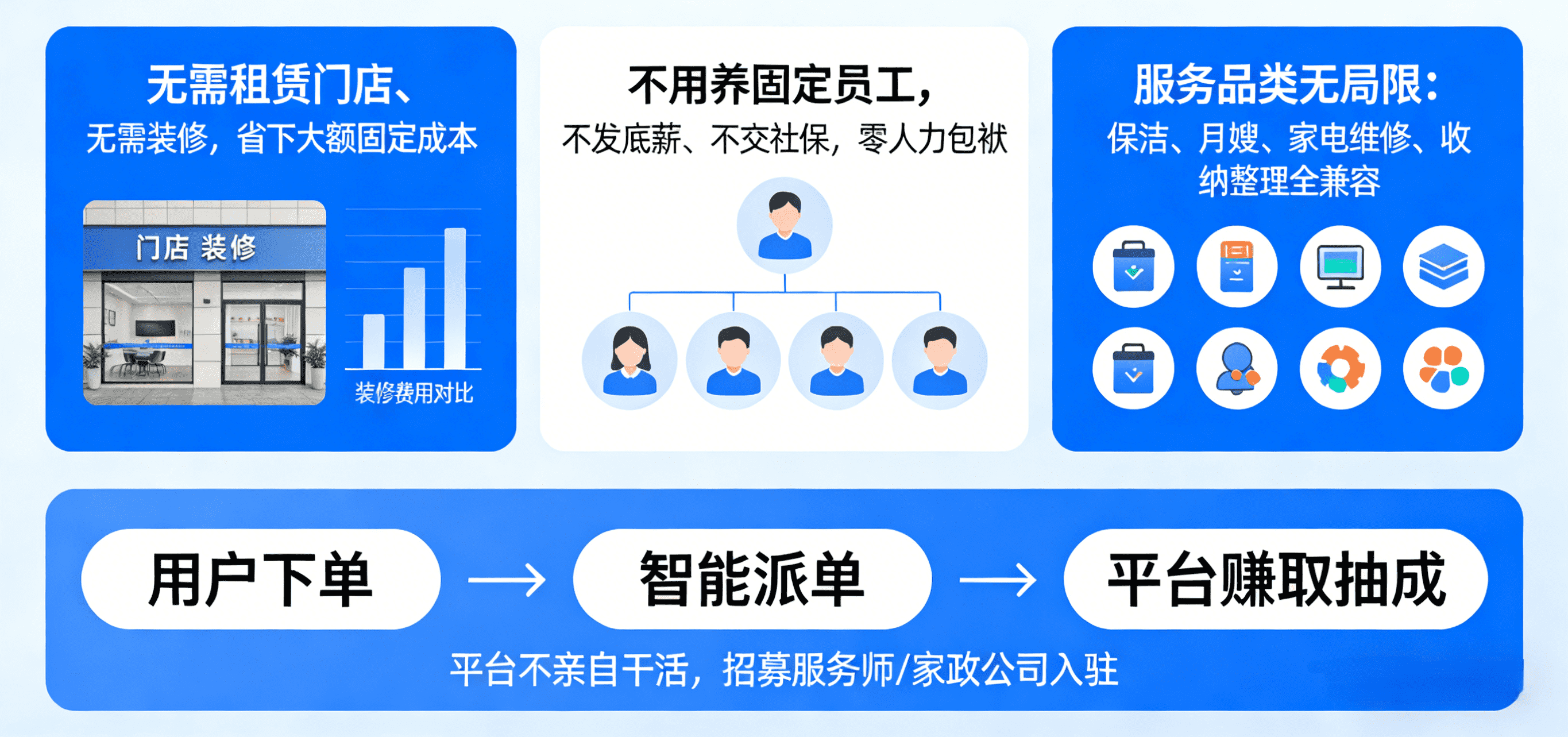家政创业别踩重资产坑!2026 轻资产上门平台,几千块钱就能轻松起盘
