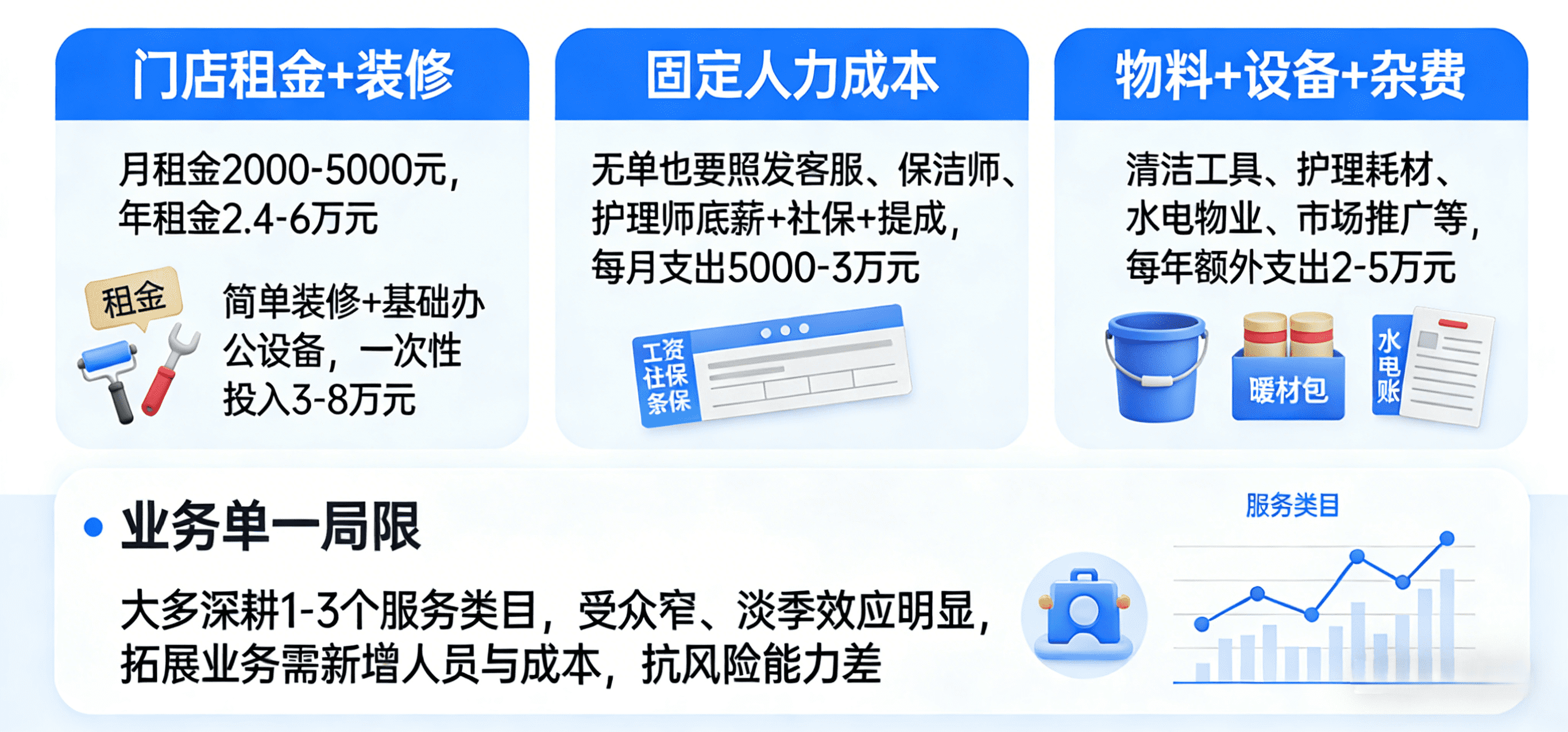 先算清传统门店的烧钱账,再告诉你 2026 年做上门家政平台到底要花多少钱,家政创业新手也能少走弯路。
